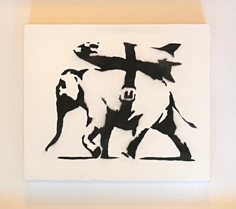 Original spray paint and emulsion on canvas, tagged by Banksy in red on right hand overlap. Numbered and dated on reverse. Comes with Certificate of Authenticity from 'Pest Control'.