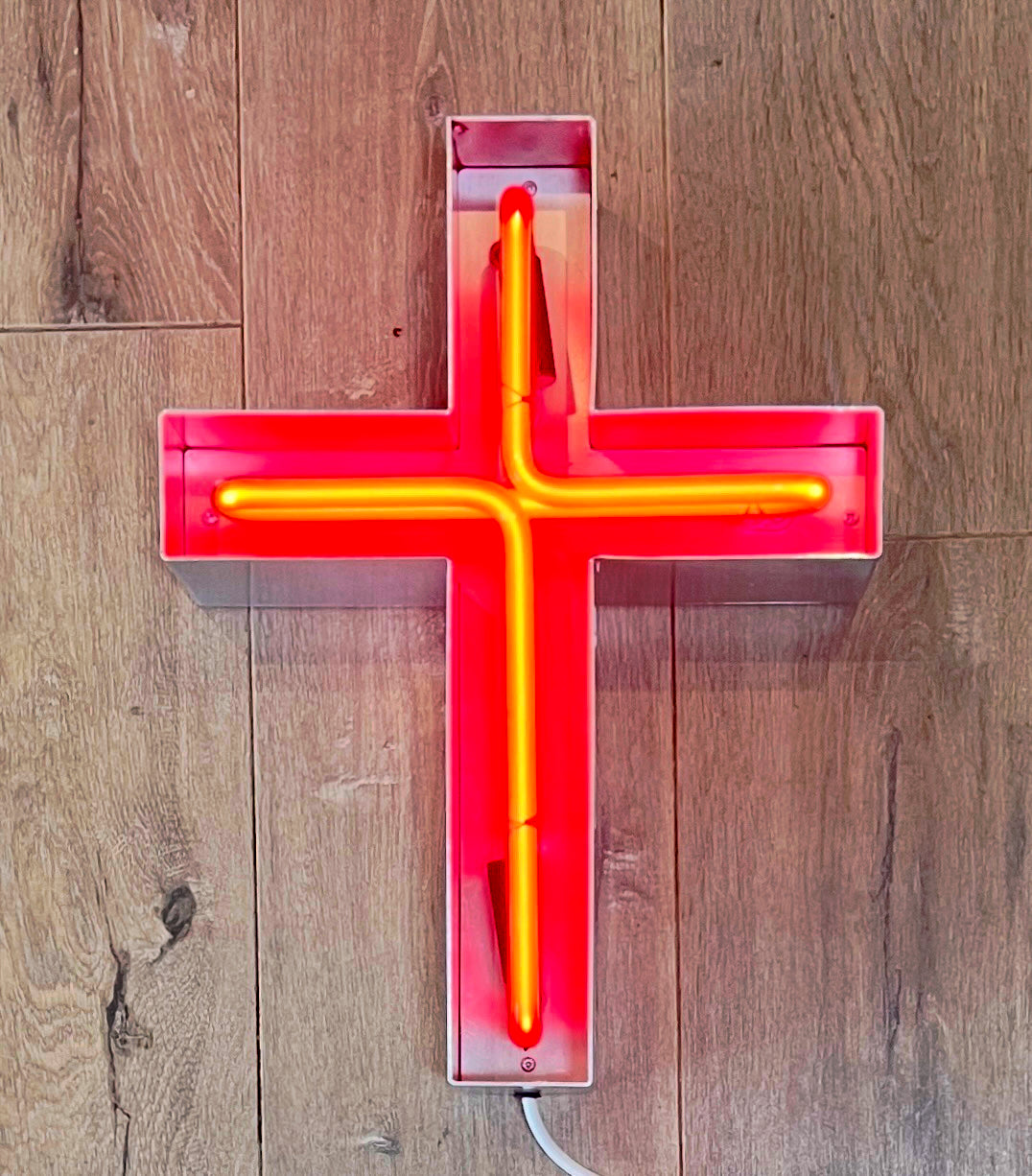 Original high quality neon within cross -shaped aluminium metal frame, signed on reverse by artist. Comes with Certificate of Authenticity.