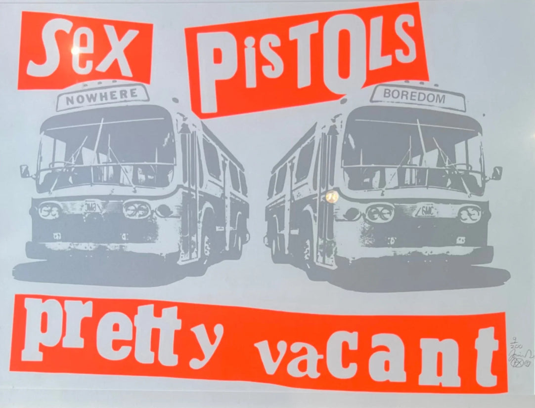 Original screen print, signed and numbered by the artist. Orange & silver colourway. Artificial original with blind stamp and official Polygram Sex Pistols license stamp. Comes with Certificate of Authenticity.