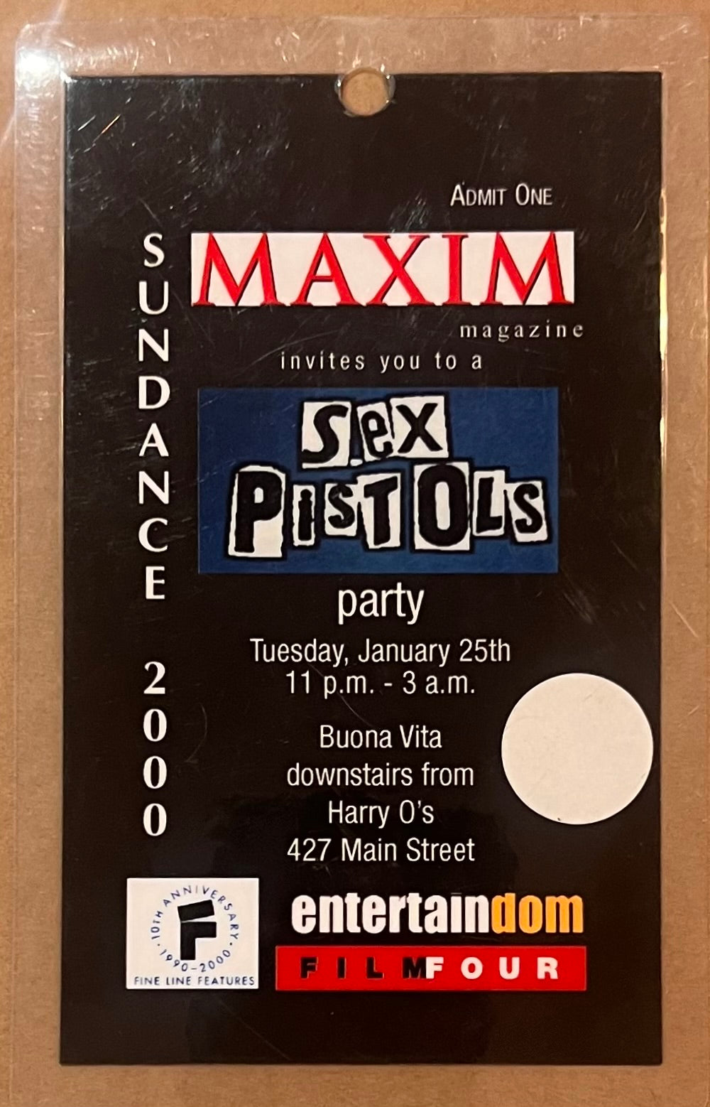 Original UK 'Filth And The Fury' World Premiere laminate Film Pass for Tuesday 25th January 2000, belonged to and signed by Steve Jones. Comes with Certificate of Authenticity.