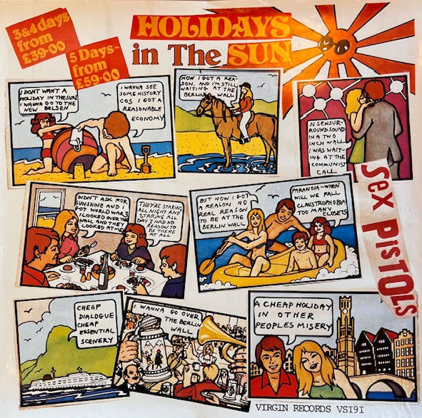 Original Virgin Records 1977 UK withdrawn in-store promotional poster to promote the VS 191 'Holidays in the Sun' single. Comes with Certificate of Authenticity.